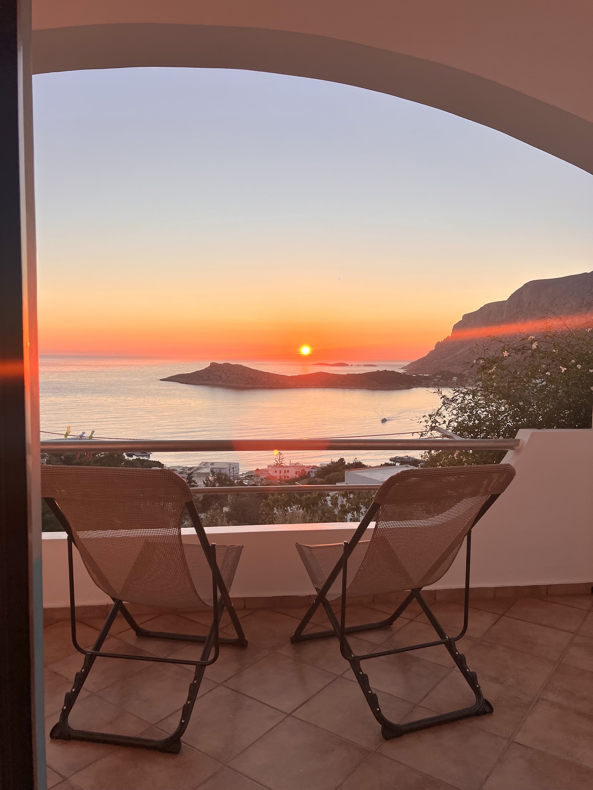 Welcome to Kalymnos and our studios. Our rooms are located in the Center of Myrties, close to the beach and main road. Sylvia studios are also very close to the climbing routes. Within minutes you will find yourselves up on the hills. The sea view and the scenery of the island of Telendos are magical. Enjoy it with your beloved ones from your own private verandas.